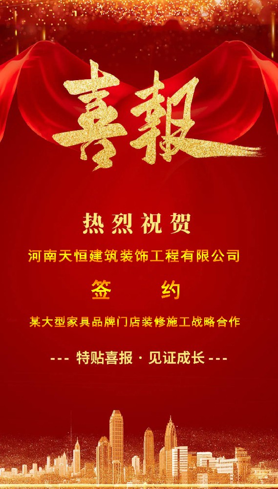 祝賀河南天恒建筑裝飾工程有限公司簽約某大型家具品牌門店裝修戰(zhàn)略合作,裝修熱線:400-777-8377